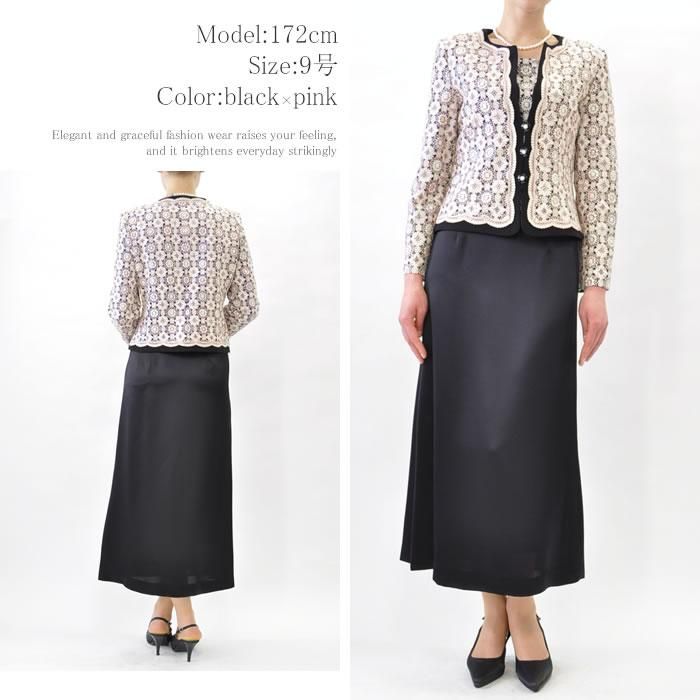 【上下セット】日本製の高級レーススーツ【ロングスカートセット】